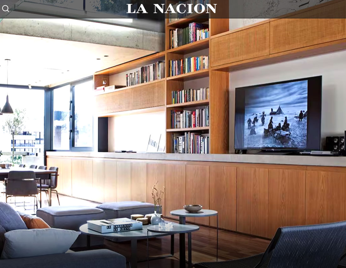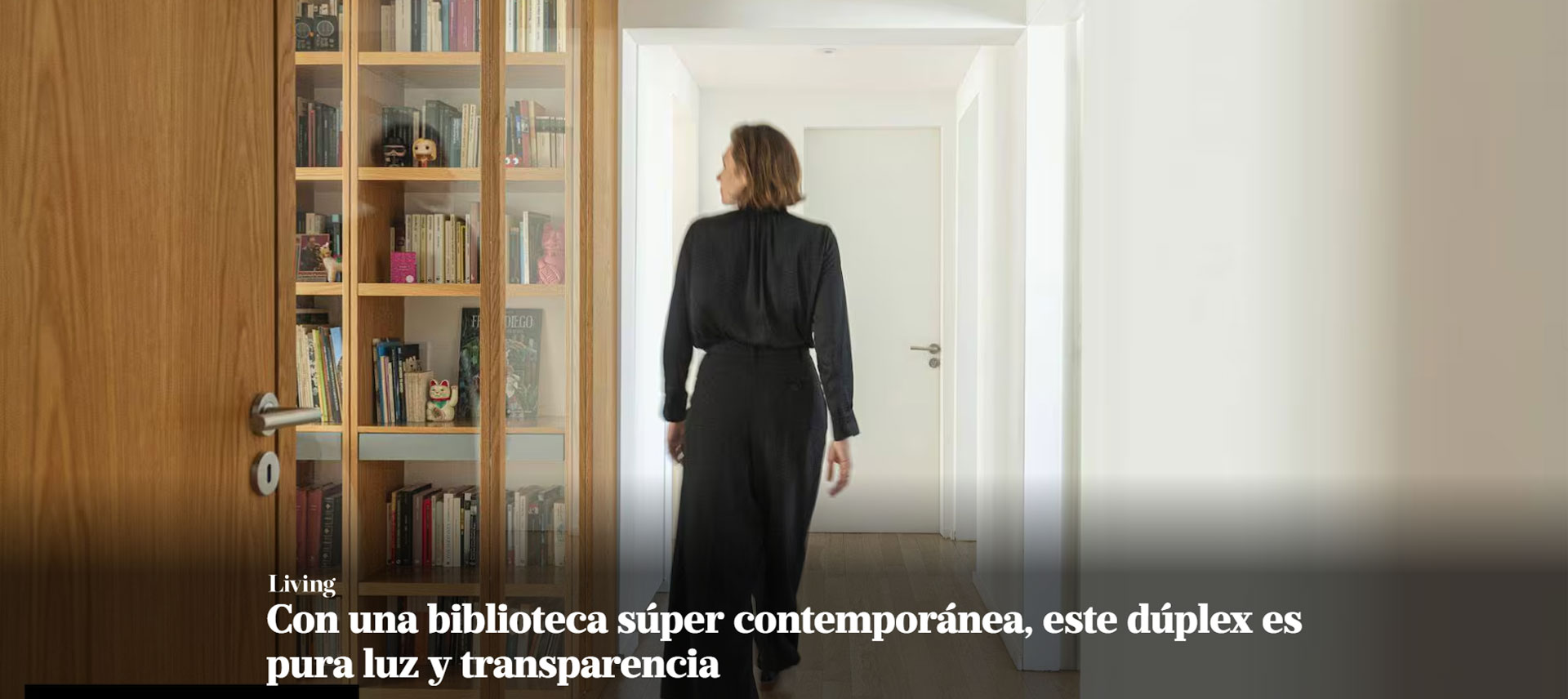 Con una biblioteca súper contemporánea, este dúplex es pura luz y transparencia